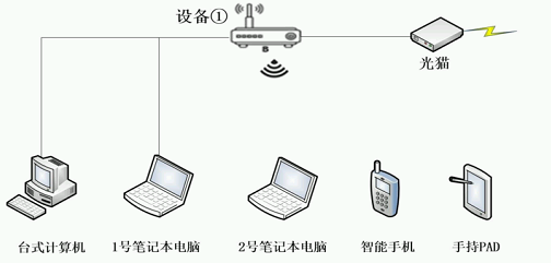 [2](判断)该图中的台式电脑通过网线连接到设备1的WAN接口实现上网(错误 )设备1WAN口用于连接光猫,LAN口用于网线连接的其它上网设备。